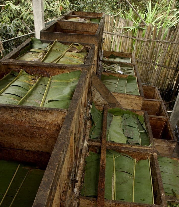 EZRA BR AGENCY LIMITED is involved in the initial stages of cocoa processing through trainings. Farmers are trained to harvest only ripe cocoa beans every after 14 days. Farmers are encouraged to split the cocoa pods using a blunt equipment in order not to damage the beans. Farmers are trained to ferment for 5-7 days in order to have a subtle aroma. Then beans are sun dried in an open space on a clean or raised surface until beans are to a maximum humidity of 8.0%. The semi dry and dry beans are kept in clean dry bags, in a well ventilated store and on a raised surface.